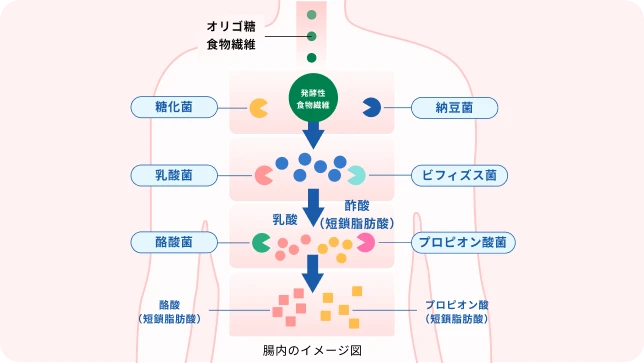 腸内で善玉菌を増やし、短鎖脂肪酸の産生を促します。