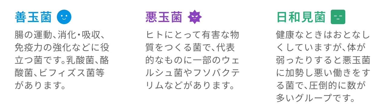 腸内細菌は大きく3つのグループに分けられます。